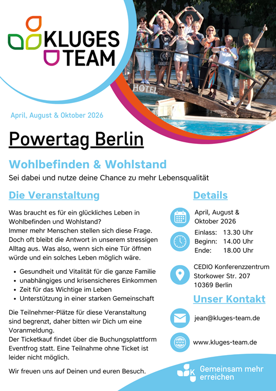 Solltest Du an einem unserer Events teilnehmen wollen, dann melde Dich bitte unten an. Wir prüfen dann die Verfügbarkeit und senden Dir im Anschluss eine separate Teilnahmebestätigung per Email zu.